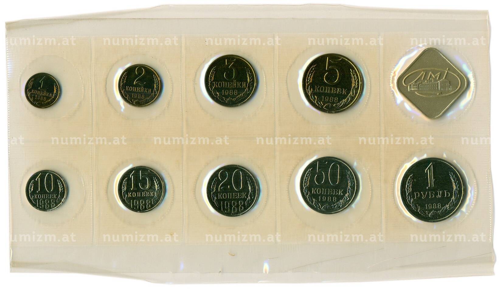 Интернет магазин «Нумизмат» предлагает приобрести Годовой набор монет СССР 1988 года ЛМД (20 копеек — Федорин №166).