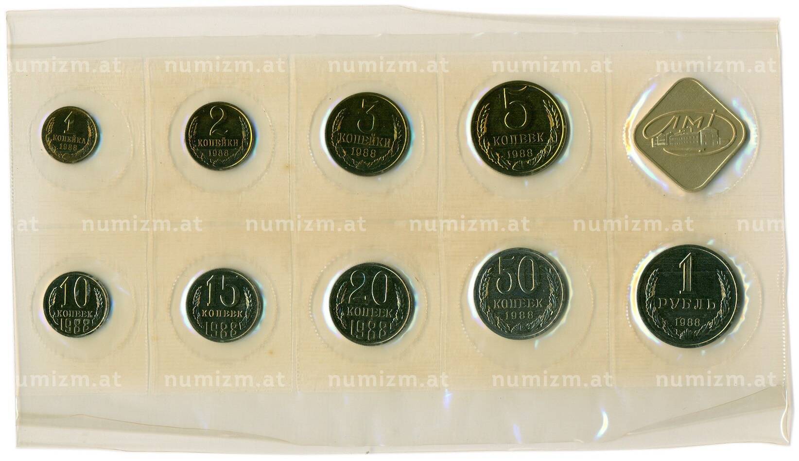 Интернет магазин «Нумизмат» предлагает приобрести Годовой набор монет СССР 1988 года ЛМД (20 копеек — Федорин №166).