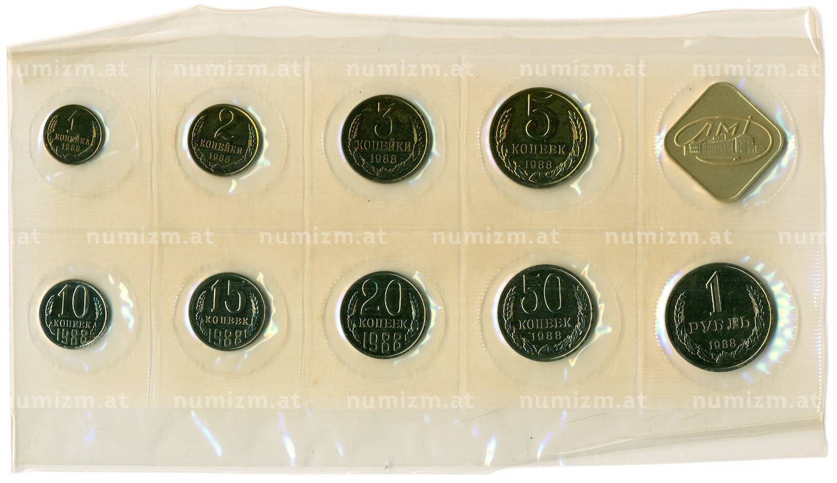 Интернет магазин «Нумизмат» предлагает приобрести Годовой набор монет СССР 1988 года ЛМД (20 копеек — Федорин №166).
