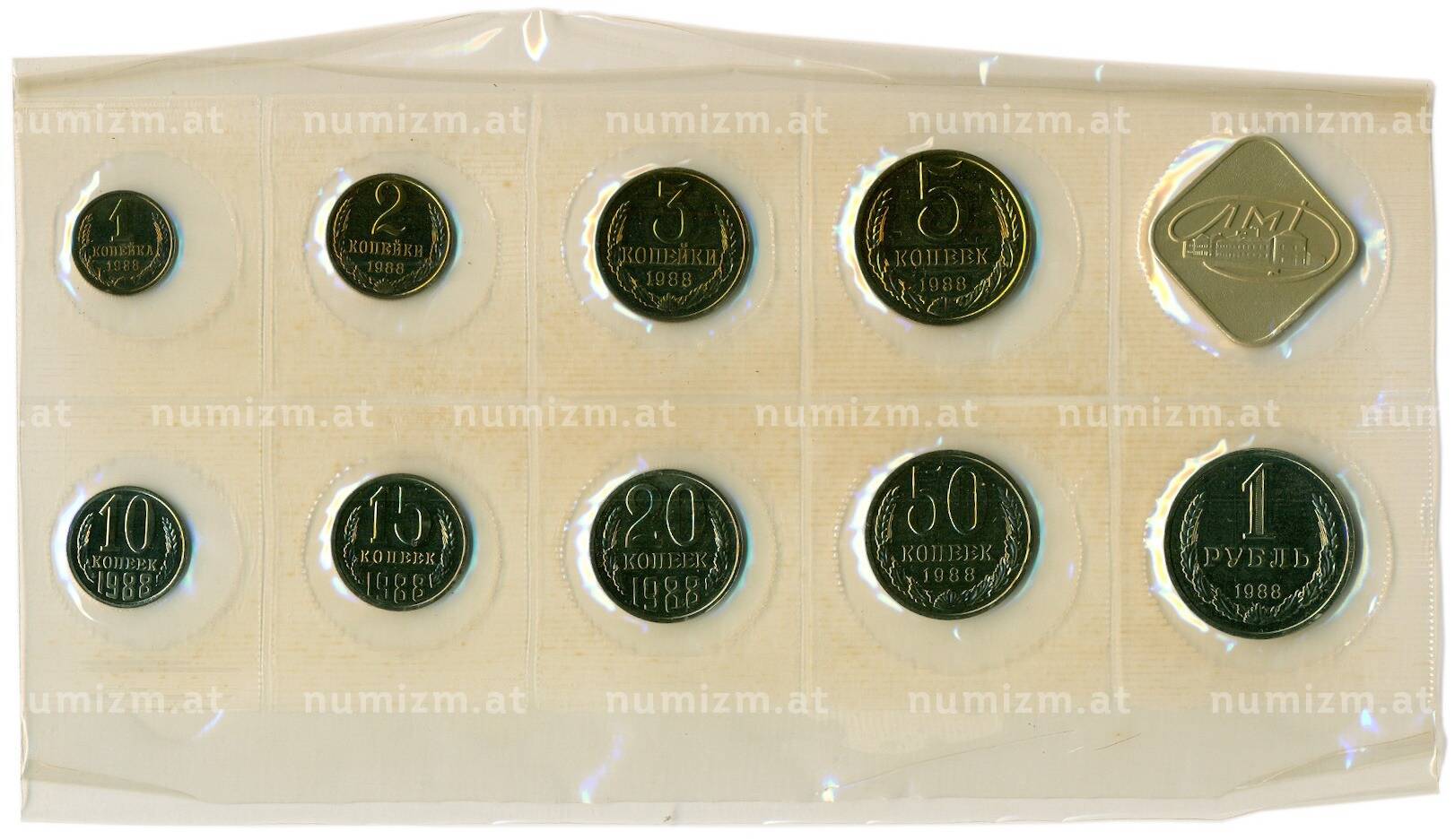 • Годовой набор монет СССР 1988 года ЛМД (20 копеек — Федорин №166) (Артикул: K12-30166) — Фото №1 Годовой набор монет СССР 1988 года ЛМД (20 копеек — Федорин №166) (Артикул: K12-30166) — Фото №2
