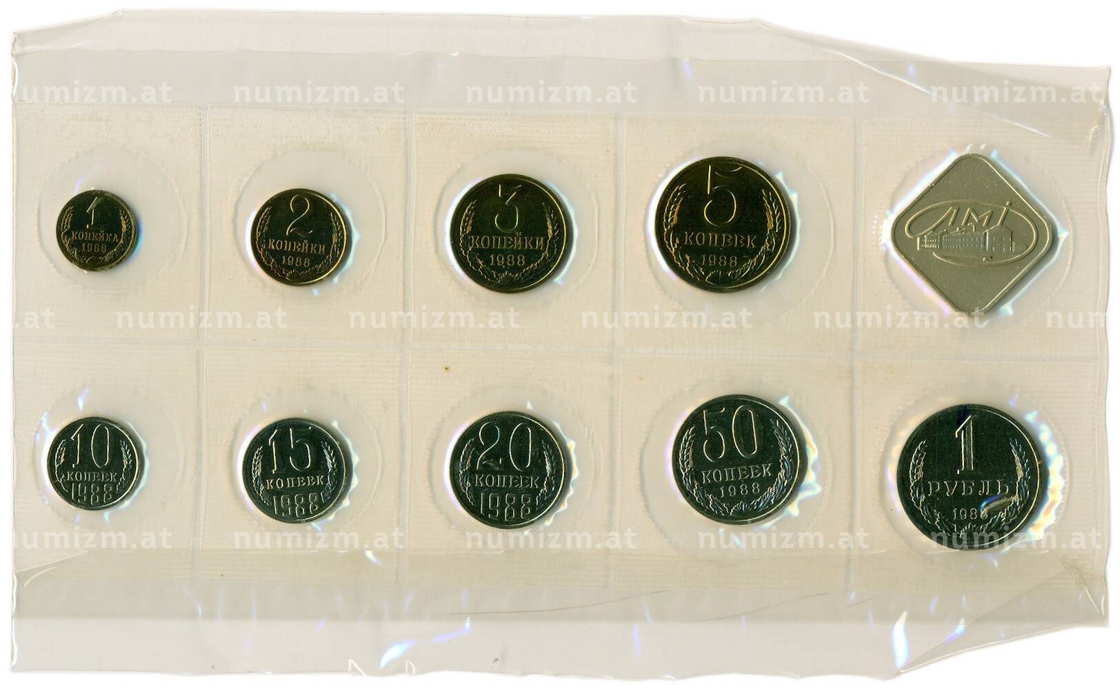 • Годовой набор монет СССР 1988 года ЛМД (20 копеек — Федорин №166) (Артикул: K12-30169) — Фото №1 Годовой набор монет СССР 1988 года ЛМД (20 копеек — Федорин №166) (Артикул: K12-30169) — Фото №2
