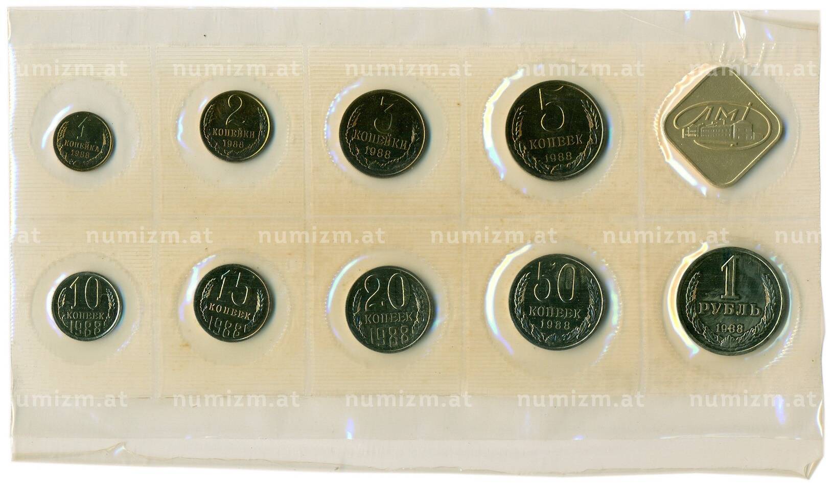 Интернет магазин «Нумизмат» предлагает приобрести Годовой набор монет СССР 1988 года ЛМД (20 копеек — Федорин №166).
