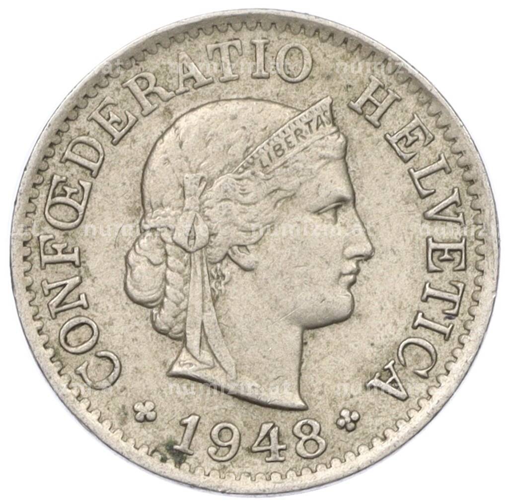 Монета 5 раппенов 1948 года Швейцария (Артикул: K12-32230): подробные характеристики, качественные фотографии в высоком разрешении, низкая цена.