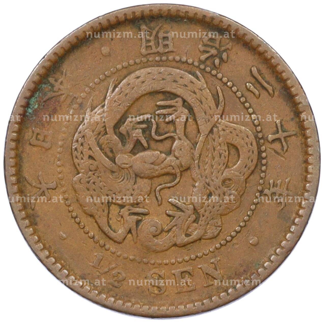 20.01.2025Интернет магазин «Нумизмат» предлагает приобрести 1/2 сена 1887 года Япония.