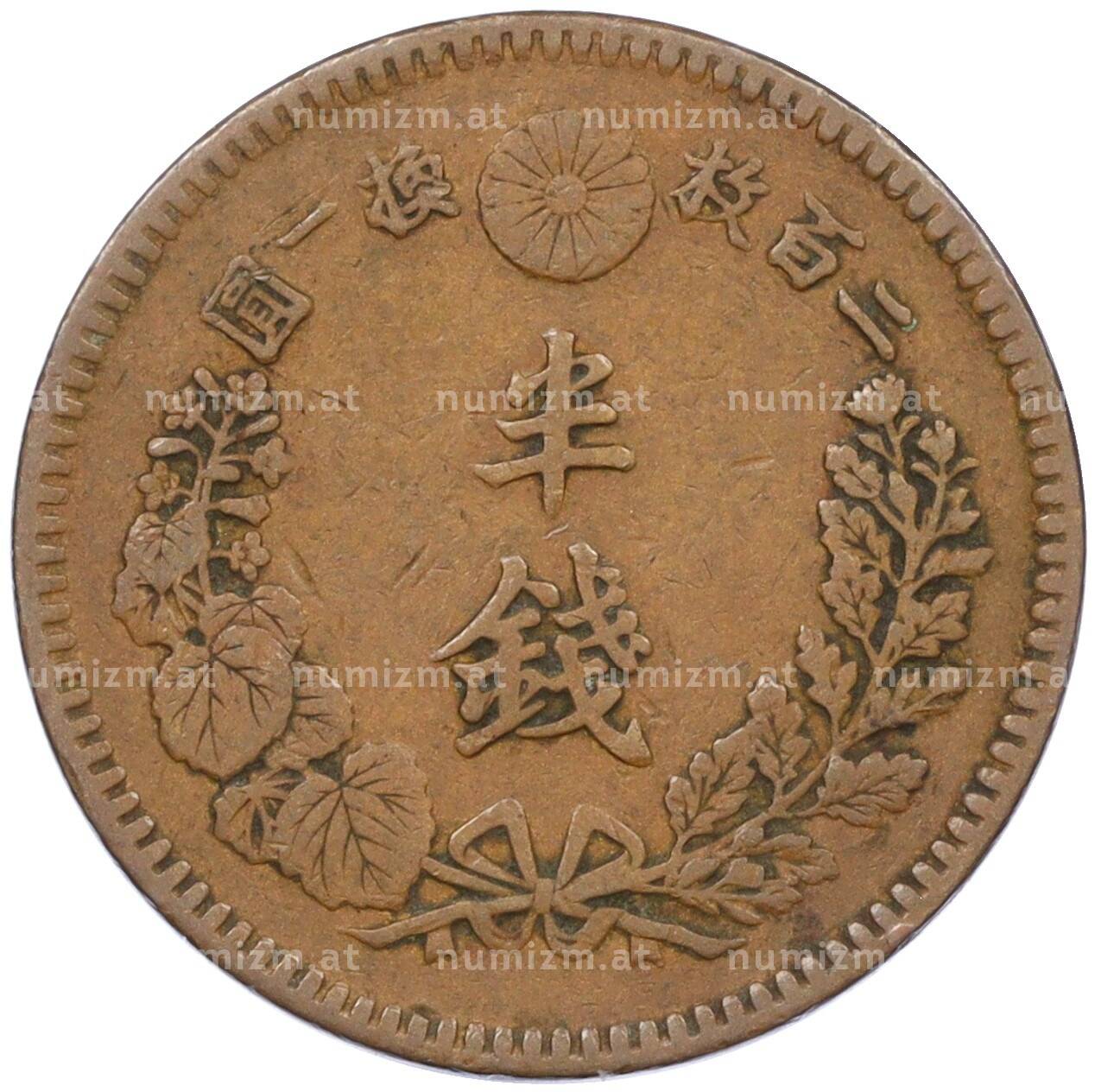 Купить 1/2 сена 1887 года Япония по привлекательной цене можно в нашем интернет-магазине — Вам достаточно оформить заказ на сайте. Все монеты, представленные в каталоге, находятся в наличии на нашем складе.