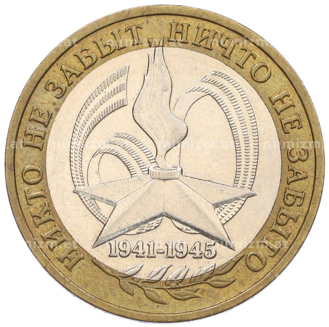 Интернет магазин «Нумизмат» предлагает приобрести 10 рублей 2005 года ММД «60 лет Победы».