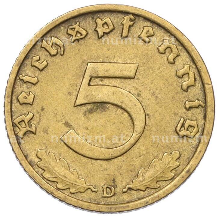 Монета 5 рейхспфеннигов 1938 года D Германия (Артикул: K12-34005): подробные характеристики, качественные фотографии в высоком разрешении, низкая цена.