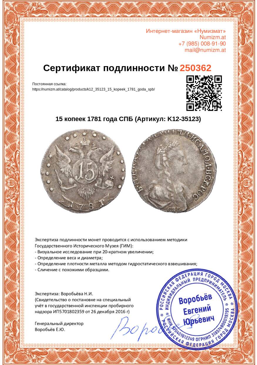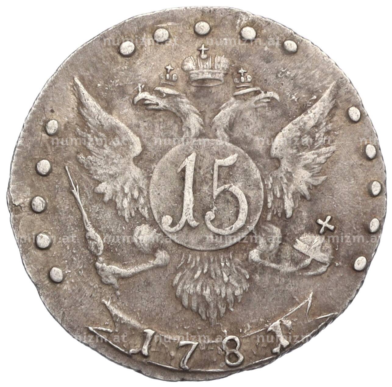 Купить 15 копеек 1781 года СПБ по привлекательной цене можно в нашем интернет-магазине — Вам достаточно оформить заказ на сайте. Все монеты, представленные в каталоге, находятся в наличии на нашем складе.