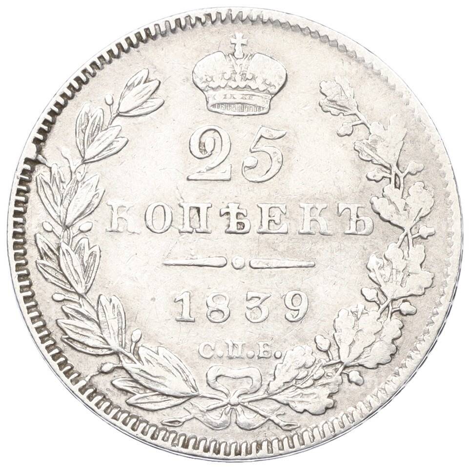 Купить 25 копеек 1839 года СПБ НГ по привлекательной цене можно в нашем интернет-магазине — Вам достаточно оформить заказ на сайте. Все монеты, представленные в каталоге, находятся в наличии на нашем складе.