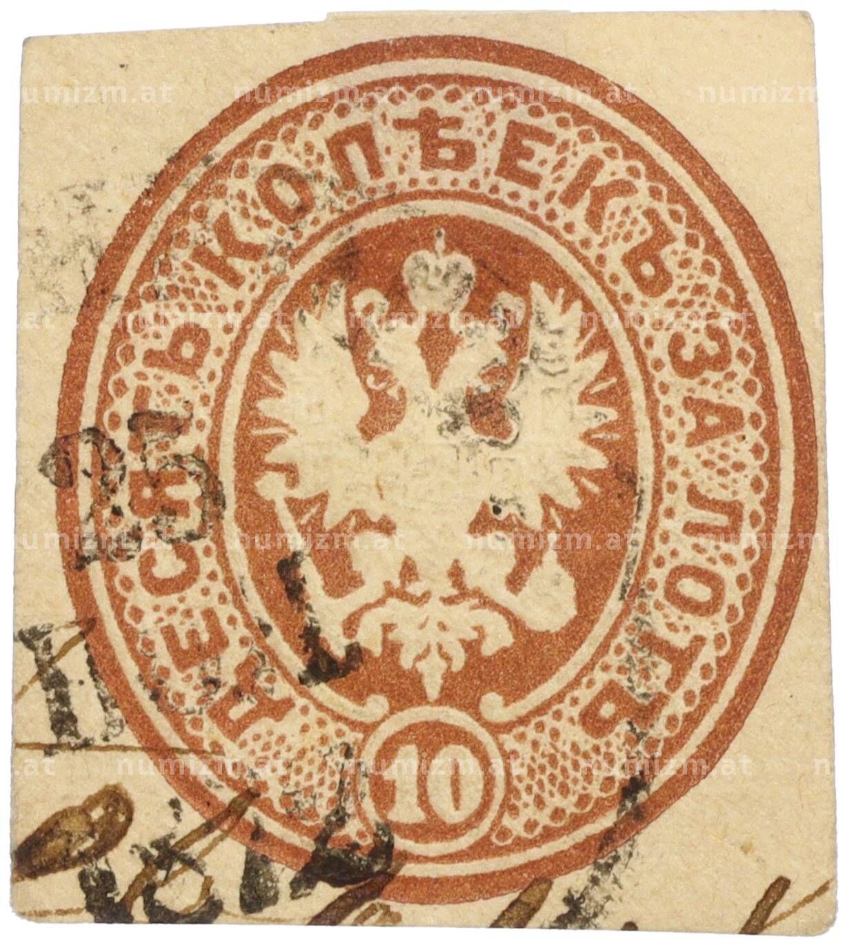 20.01.2025Интернет магазин «Нумизмат» предлагает приобрести Почтовый штемпель (вырезка из конверта) 1870 года Российская Империя «10 копеек за письмо».
