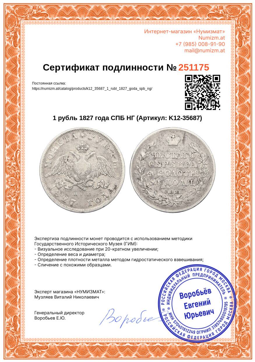 20.01.2025Интернет магазин «Нумизмат» предлагает приобрести 1 рубль 1827 года СПБ НГ.