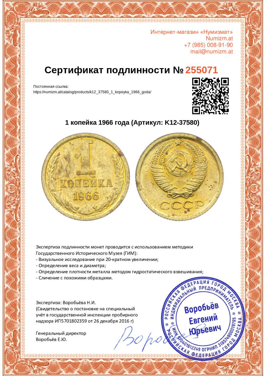Купить 1 копейка 1966 года по привлекательной цене можно в нашем интернет-магазине — Вам достаточно оформить заказ на сайте. Все монеты, представленные в каталоге, находятся в наличии на нашем складе.