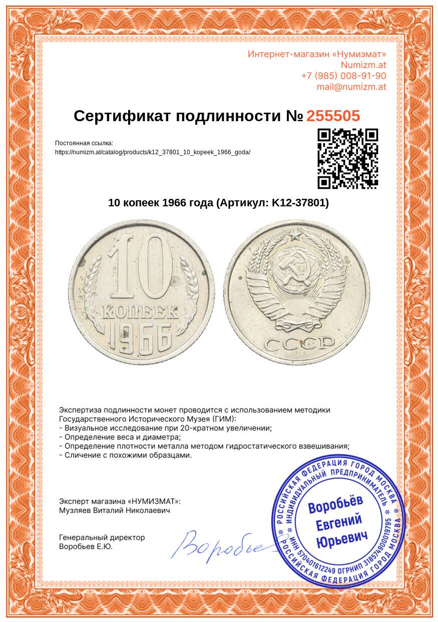 Интернет магазин «Нумизмат» предлагает приобрести 10 копеек 1966 года.