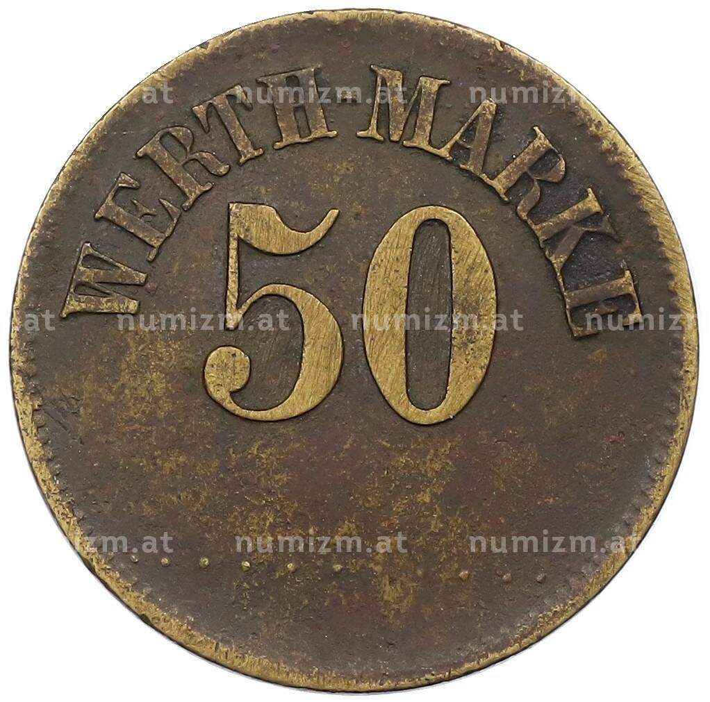Купить Жетон «Werth-Marke — 50 пфеннигов» Германия по привлекательной цене можно в нашем интернет-магазине — Вам достаточно оформить заказ на сайте. Все монеты, представленные в каталоге, находятся в наличии на нашем складе.