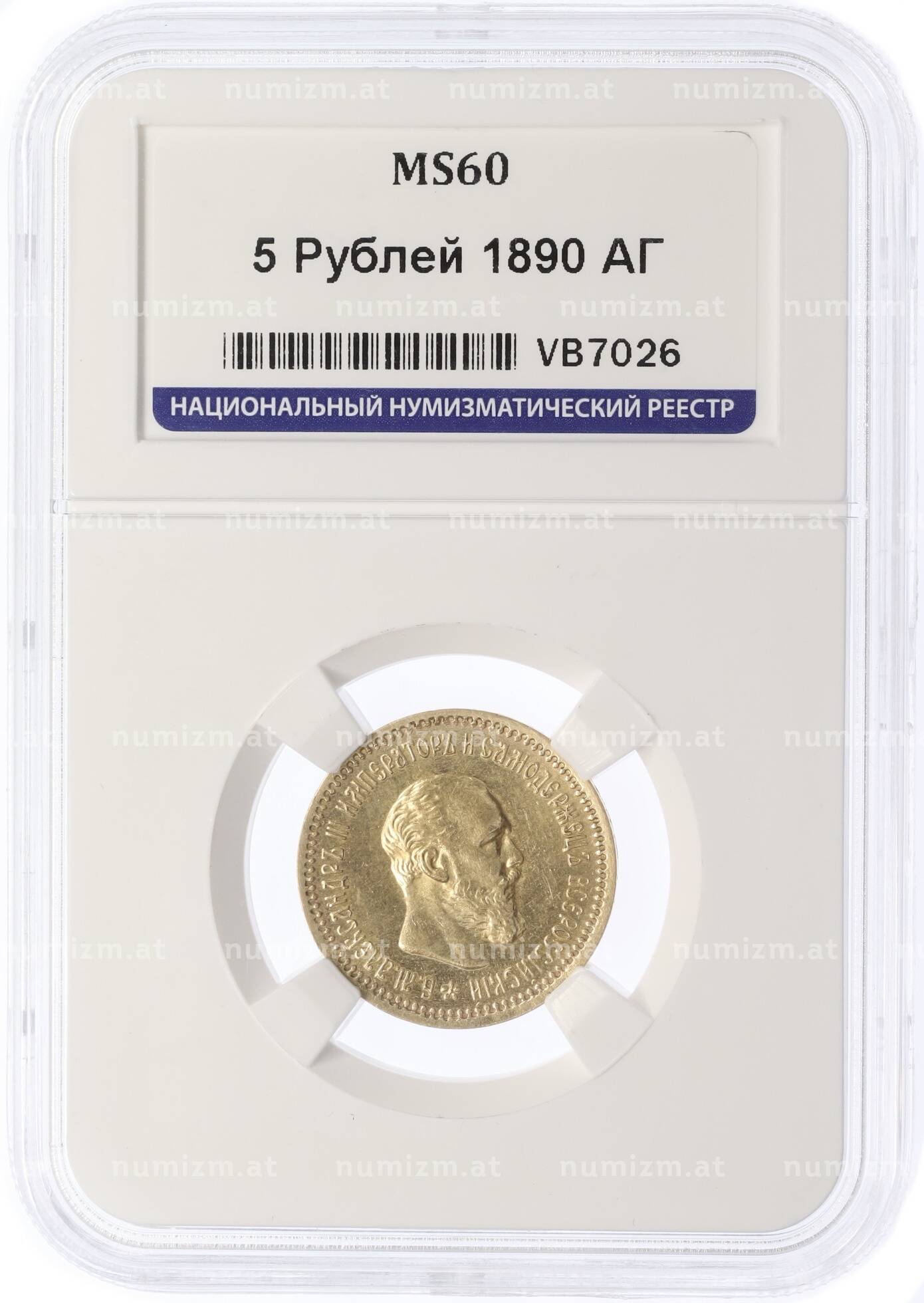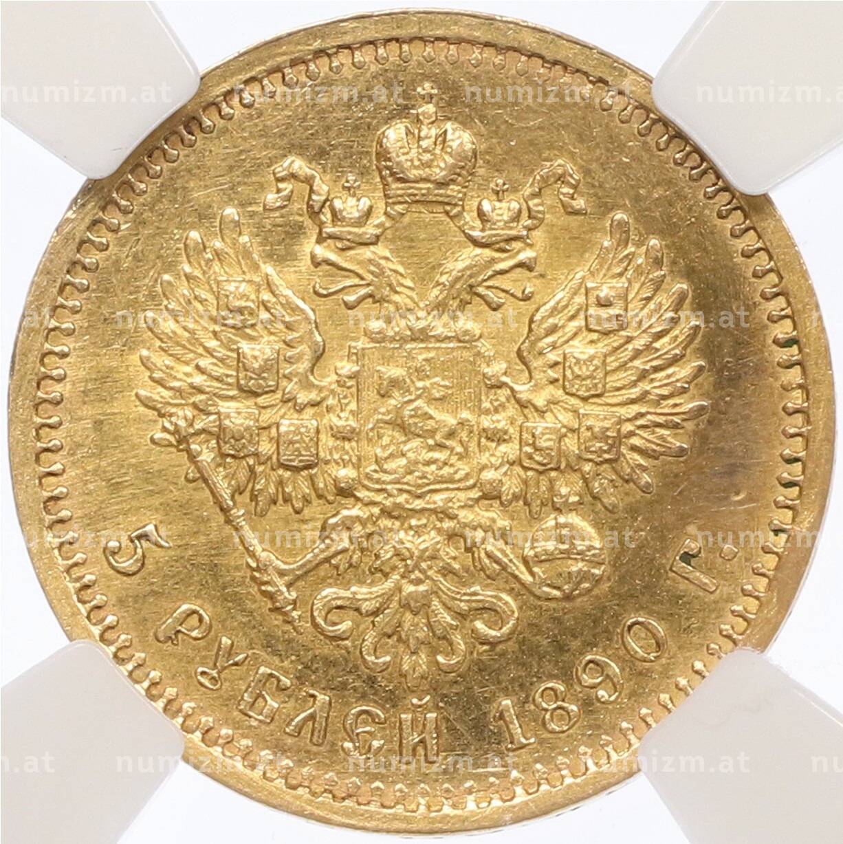 Купить 5 рублей 1890 года (АГ) в слабе ННР (MS60) по привлекательной цене можно в нашем интернет-магазине — Вам достаточно оформить заказ на сайте. Все монеты, представленные в каталоге, находятся в наличии на нашем складе.