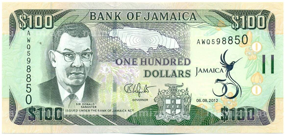 20.01.2025Интернет магазин «Нумизмат» предлагает приобрести 100 долларов 2012 года Ямайка «50 лет Независимости Ямайки».