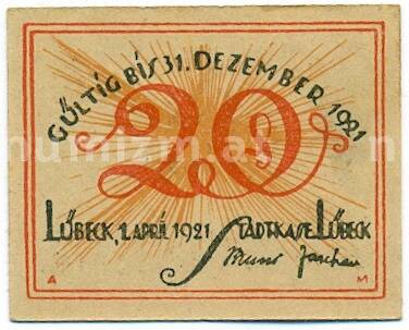 Купить 20 пфеннигов 1921 года Германия — город Любек (Нотгельд) по привлекательной цене можно в нашем интернет-магазине — Вам достаточно оформить заказ на сайте. Все монеты, представленные в каталоге, находятся в наличии на нашем складе.