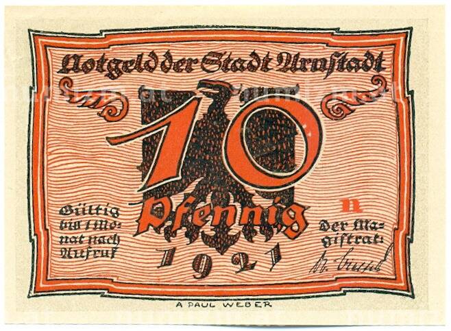 Купить 10 пфеннигов 1921 года Германия — город Арнштадт (Нотгельд) по привлекательной цене можно в нашем интернет-магазине — Вам достаточно оформить заказ на сайте. Все монеты, представленные в каталоге, находятся в наличии на нашем складе.