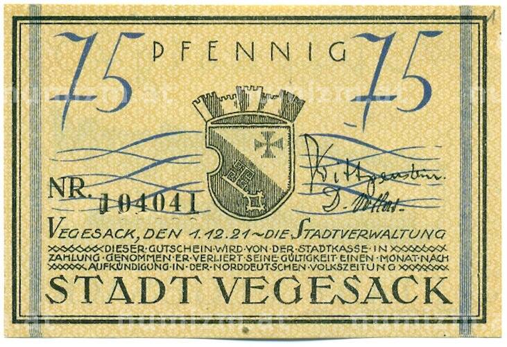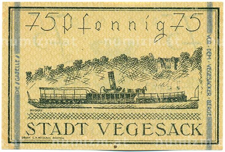 Купить 75 пфеннигов 1921 года Германия — город Фегезак (Нотгельд) по привлекательной цене можно в нашем интернет-магазине — Вам достаточно оформить заказ на сайте. Все монеты, представленные в каталоге, находятся в наличии на нашем складе.