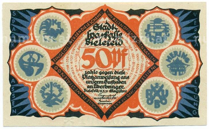 Купить 50 пфеннигов 1921 года Германия — город Билефельд (Нотгельд) по привлекательной цене можно в нашем интернет-магазине — Вам достаточно оформить заказ на сайте. Все монеты, представленные в каталоге, находятся в наличии на нашем складе.