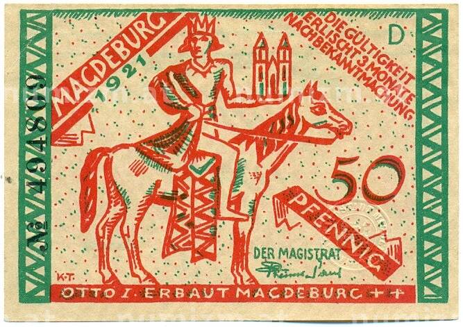 Банкнота 50 пфеннигов 1921 года Германия — город Магдебург (Нотгельд) (Артикул: K12-41732): подробные характеристики, качественные фотографии в высоком разрешении, низкая цена.