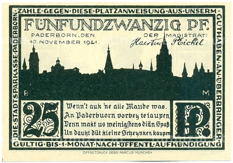 Купить 25 пфеннигов 1921 года Германия — город Падерборн (Нотгельд) по привлекательной цене можно в нашем интернет-магазине — Вам достаточно оформить заказ на сайте. Все монеты, представленные в каталоге, находятся в наличии на нашем складе.