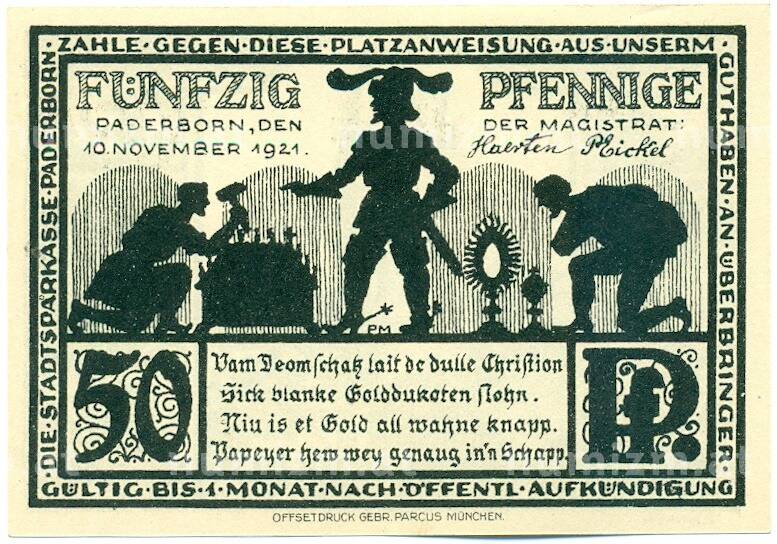 Купить 50 пфеннигов 1921 года Германия — город Падерборн (Нотгельд) по привлекательной цене можно в нашем интернет-магазине — Вам достаточно оформить заказ на сайте. Все монеты, представленные в каталоге, находятся в наличии на нашем складе.