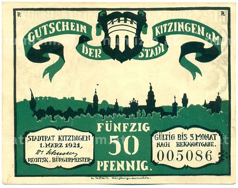 Банкнота 50 пфеннигов 1921 года Германия — город Китцинген (Нотгельд) (Артикул: K12-41752): подробные характеристики, качественные фотографии в высоком разрешении, низкая цена.