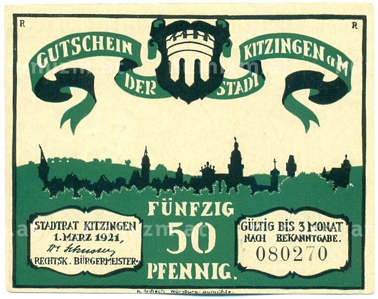 Банкнота 50 пфеннигов 1921 года Германия — город Китцинген (Нотгельд) (Артикул: K12-41753): подробные характеристики, качественные фотографии в высоком разрешении, низкая цена.