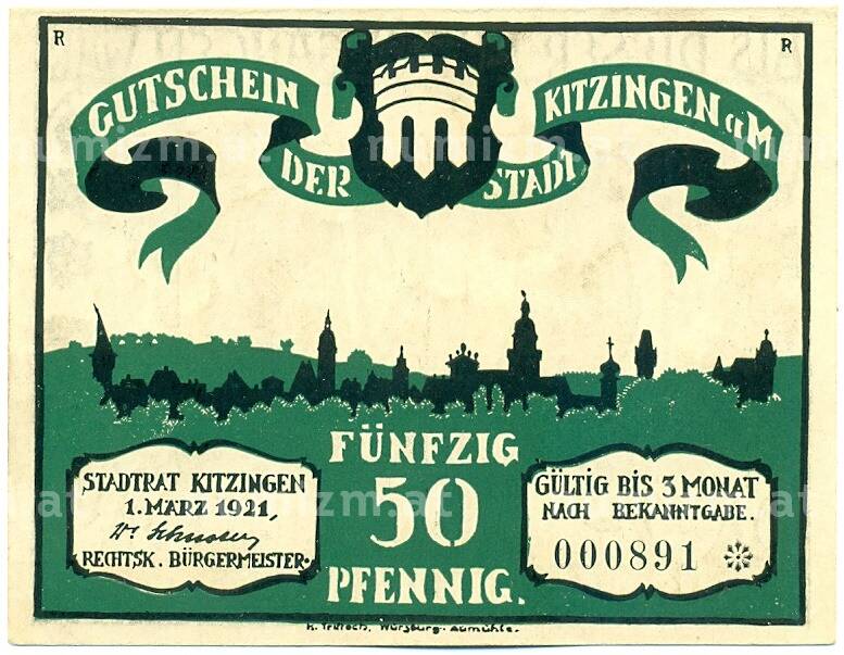 Банкнота 50 пфеннигов 1921 года Германия — город Китцинген (Нотгельд) (Артикул: K12-41755): подробные характеристики, качественные фотографии в высоком разрешении, низкая цена.