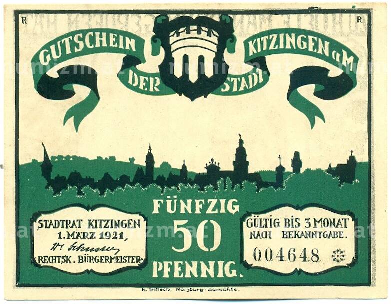 Банкнота 50 пфеннигов 1921 года Германия — город Китцинген (Нотгельд) (Артикул: K12-41756): подробные характеристики, качественные фотографии в высоком разрешении, низкая цена.