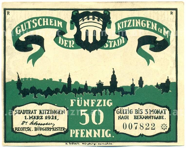 Купить 50 пфеннигов 1921 года Германия — город Китцинген (Нотгельд) по привлекательной цене можно в нашем интернет-магазине — Вам достаточно оформить заказ на сайте. Все монеты, представленные в каталоге, находятся в наличии на нашем складе.