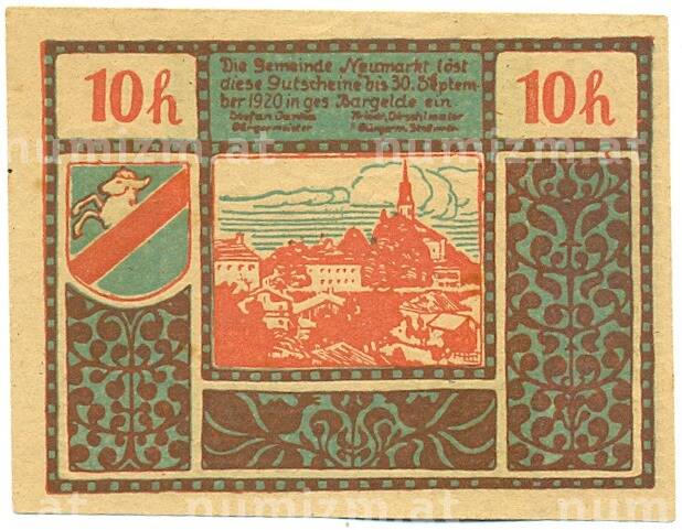 Купить 10 геллеров 1920 года Австрия — Ноймаркт Зальцбург (Нотгельд) по привлекательной цене можно в нашем интернет-магазине — Вам достаточно оформить заказ на сайте. Все монеты, представленные в каталоге, находятся в наличии на нашем складе.