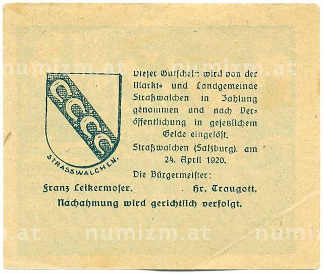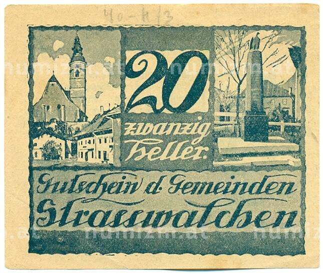 Купить 20 геллеров 1920 года Австрия — коммуна Штрасвальхен (Нотгельд) по привлекательной цене можно в нашем интернет-магазине — Вам достаточно оформить заказ на сайте. Все монеты, представленные в каталоге, находятся в наличии на нашем складе.