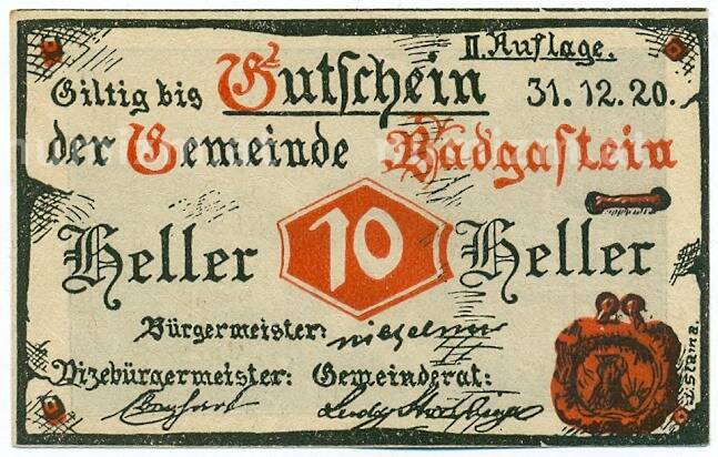 Купить 10 геллеров 1920 года Австрия — Бад-Гаштайн (Нотгельд) по привлекательной цене можно в нашем интернет-магазине — Вам достаточно оформить заказ на сайте. Все монеты, представленные в каталоге, находятся в наличии на нашем складе.