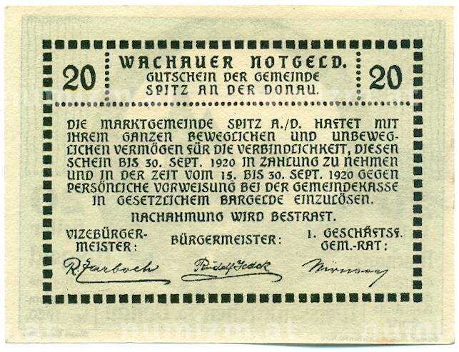 Купить 20 геллеров 1920 года Австрия — Вахау (Нотгельд) по привлекательной цене можно в нашем интернет-магазине — Вам достаточно оформить заказ на сайте. Все монеты, представленные в каталоге, находятся в наличии на нашем складе.
