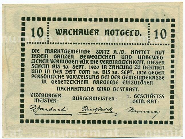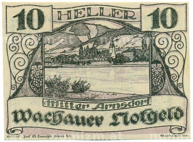 Банкнота 10 геллеров 1920 года Австрия — Вахау (Нотгельд) (Артикул: K12-41854): подробные характеристики, качественные фотографии в высоком разрешении, низкая цена.