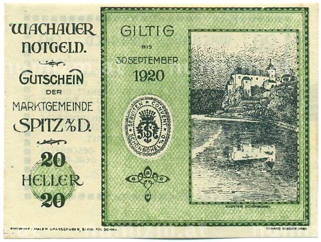 Интернет магазин «Нумизмат» предлагает приобрести 20 геллеров 1920 года Австрия — Вахау (Нотгельд).
