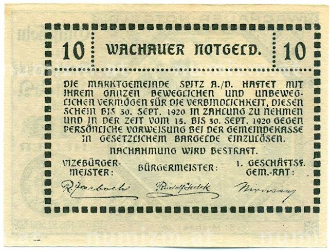 Купить 10 геллеров 1920 года Австрия — Вахау (Нотгельд) по привлекательной цене можно в нашем интернет-магазине — Вам достаточно оформить заказ на сайте. Все монеты, представленные в каталоге, находятся в наличии на нашем складе.