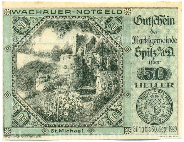 Купить 50 геллеров 1920 года Австрия — Вахау (Нотгельд) по привлекательной цене можно в нашем интернет-магазине — Вам достаточно оформить заказ на сайте. Все монеты, представленные в каталоге, находятся в наличии на нашем складе.