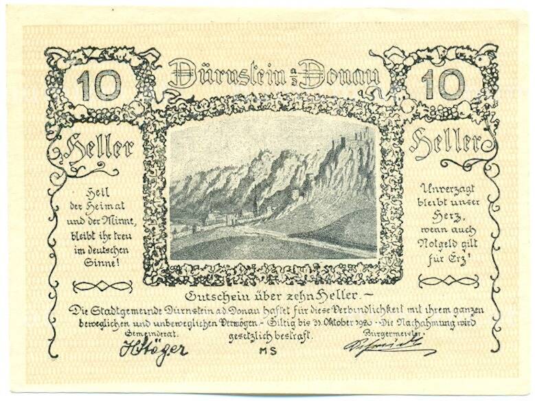 Купить 10 геллеров 1920 года Австрия — город Дюрнштайн (Нотгельд) по привлекательной цене можно в нашем интернет-магазине — Вам достаточно оформить заказ на сайте. Все монеты, представленные в каталоге, находятся в наличии на нашем складе.