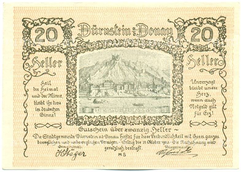 Купить 20 геллеров 1920 года Австрия — город Дюрнштайн (Нотгельд) по привлекательной цене можно в нашем интернет-магазине — Вам достаточно оформить заказ на сайте. Все монеты, представленные в каталоге, находятся в наличии на нашем складе.
