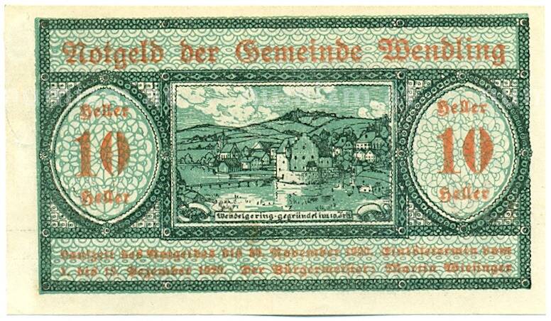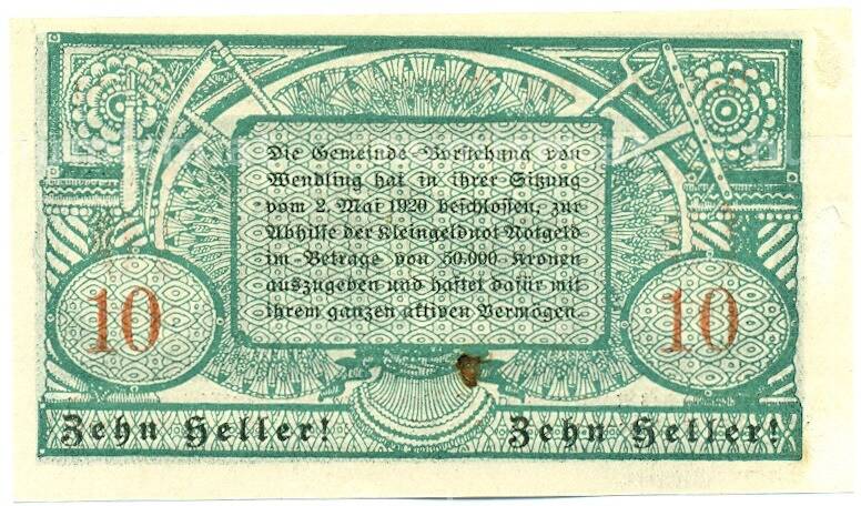 Купить 10 геллеров 1920 года Австрия — коммуна Вендлинг (Нотгельд) по привлекательной цене можно в нашем интернет-магазине — Вам достаточно оформить заказ на сайте. Все монеты, представленные в каталоге, находятся в наличии на нашем складе.