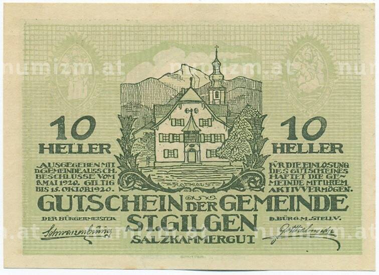Купить 10 геллеров 1920 года Австрия — коммуна Санкт-Гильген (Нотгельд) по привлекательной цене можно в нашем интернет-магазине — Вам достаточно оформить заказ на сайте. Все монеты, представленные в каталоге, находятся в наличии на нашем складе.