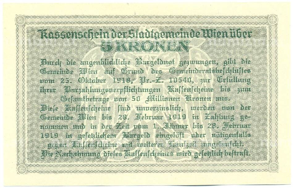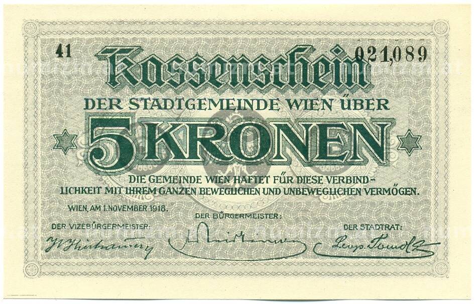 Купить 5 крон 1918 года Австрия — город Вена (Нотгельд) по привлекательной цене можно в нашем интернет-магазине — Вам достаточно оформить заказ на сайте. Все монеты, представленные в каталоге, находятся в наличии на нашем складе.