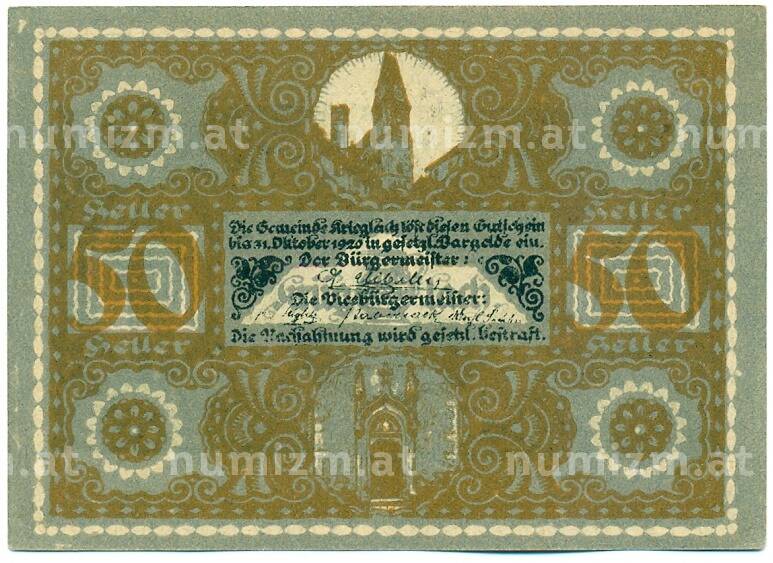 Купить 50 геллеров 1920 года Австрия — коммуна Криглах (Нотгельд) по привлекательной цене можно в нашем интернет-магазине — Вам достаточно оформить заказ на сайте. Все монеты, представленные в каталоге, находятся в наличии на нашем складе.