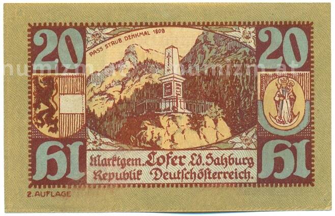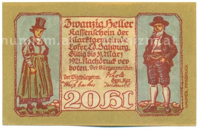 Купить 20 геллеров 1921 года Австрия — коммуна Лофер (Нотгельд) по привлекательной цене можно в нашем интернет-магазине — Вам достаточно оформить заказ на сайте. Все монеты, представленные в каталоге, находятся в наличии на нашем складе.