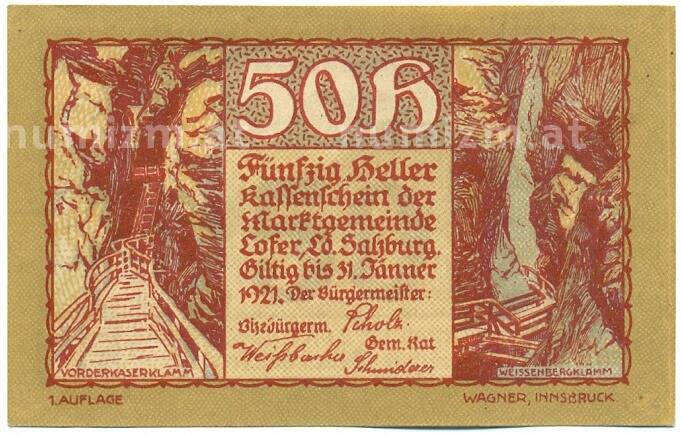 Купить 50 геллеров 1921 года Австрия — коммуна Лофер (Нотгельд) по привлекательной цене можно в нашем интернет-магазине — Вам достаточно оформить заказ на сайте. Все монеты, представленные в каталоге, находятся в наличии на нашем складе.