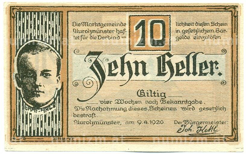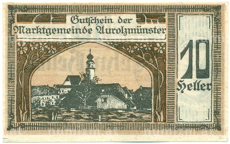 Купить 10 геллеров 1920 года Австрия — община Аурольцмюнстер (Нотгельд) по привлекательной цене можно в нашем интернет-магазине — Вам достаточно оформить заказ на сайте. Все монеты, представленные в каталоге, находятся в наличии на нашем складе.
