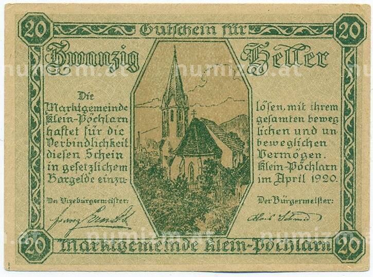Купить 20 геллеров 1920 года Австрия — коммуна Клайн-Пехларн (Нотгельд) по привлекательной цене можно в нашем интернет-магазине — Вам достаточно оформить заказ на сайте. Все монеты, представленные в каталоге, находятся в наличии на нашем складе.